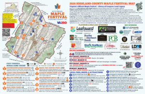 2026 Brochure with Sugar Trail Map: Click here to view and download a PDF file of the brochure. You can find a physical copy at various Visitor Centers and locations within and without the county starting in January, including the Highland County Visitor Center located in the Highlander at 27 West Main Street in Monterey. (Please be sure to “scale to fit” if you want to print your own on a standard sheet of paper). You can also use our online brochure order form to have a copy mailed by clicking here.